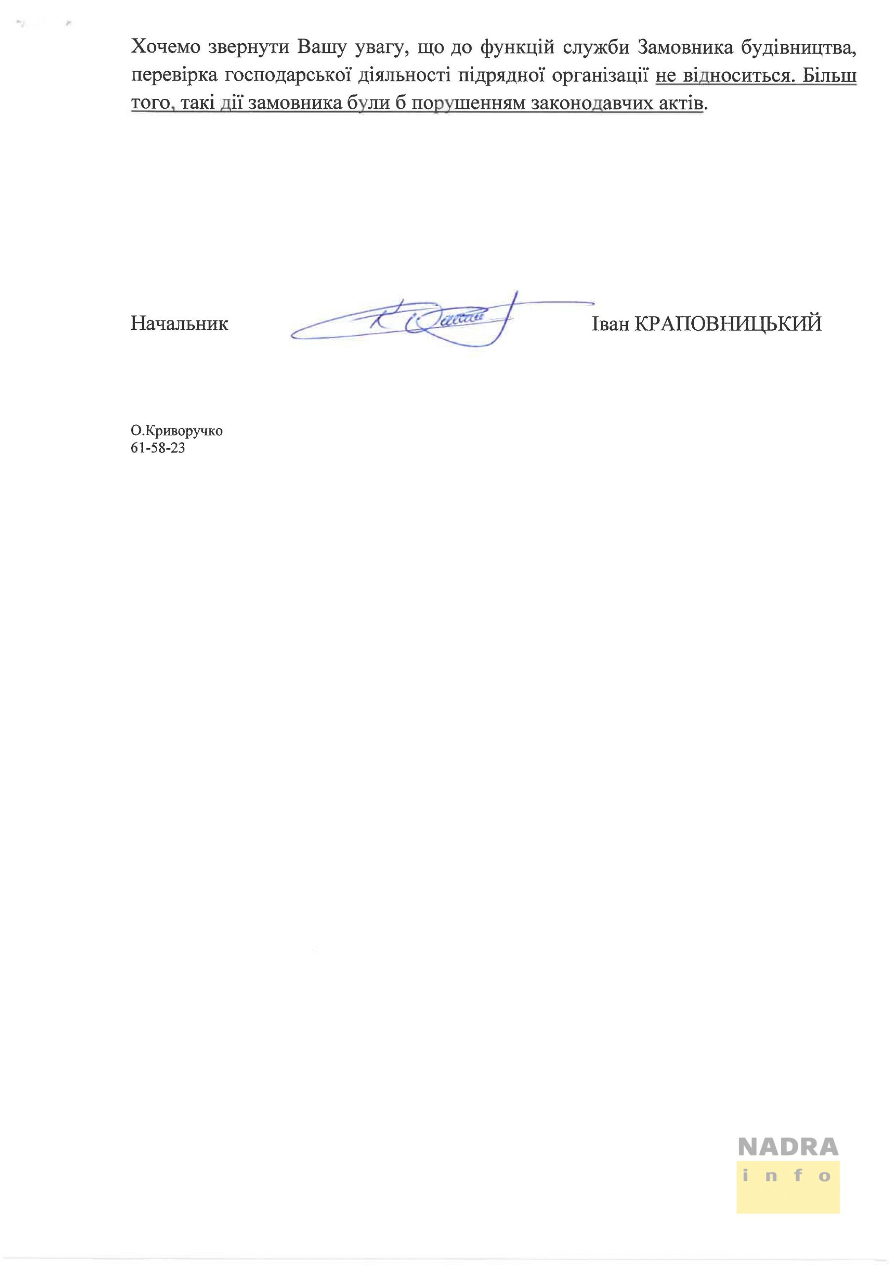 В САД також наголосили, що отримання генпідрядними організаціями дозволів на користування надрами є питанням особистої господарської діяльності підприємства, а “до функцій Замовника будівництва перевірка господарської діяльності підрядної організації не відноситься. Більш того, такі дії замовника були б порушенням законодавчих актів” (підкреслено САД – Ред.).