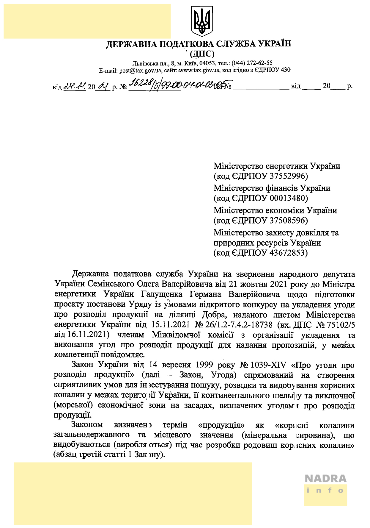 Відповідні розʼяснення містяться в повідомленні, направленому ДПС до Міністерств енергетики, фінансів, економіки і захисту довкілля та природніх ресурсів України 24.11.2021 у відповідь на звернення народного депутата України Олега Семінського до Міністра енергетики Германа Галущенка. Інформує власне джерело NADRA.info. Публікуємо копію документа: