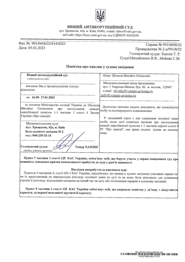 Стисло про позовні вимоги Мінʼюсту і суть справи ми писали в матеріалі Санкційні надра: ВАКС почав розгляд справи проти російського мільярдера Шелкова. Відтоді у Вищому антикорупційному суді відбулися 6 засідань: 26, 27 і 29 грудня 2022-го, а також 3, 4, і 5 січня.
