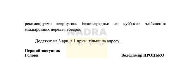 У Службі наголошують, що «інформація про міжнародні передачі товарів, отримана органами, що здійснюють державний експортний контроль, від органів виконавчої влади, суб’єктів здійснення міжнародних передач товарів, використовується виключно у цілях експортного контролю і захисту національних інтересів»: