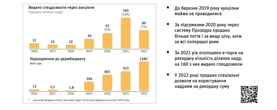 Причому найбільший річний виторг – понад 1,5 млрд грн – Державна служба геології та надр України (організатор таких аукціонів) отримала у воєнному 2022-му: