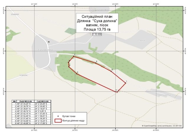 Ділянка «Суха долина» знаходиться поблизу с. Суха Долина за 30 км на південь від Львова. Джерело: https://prozorro.sale/