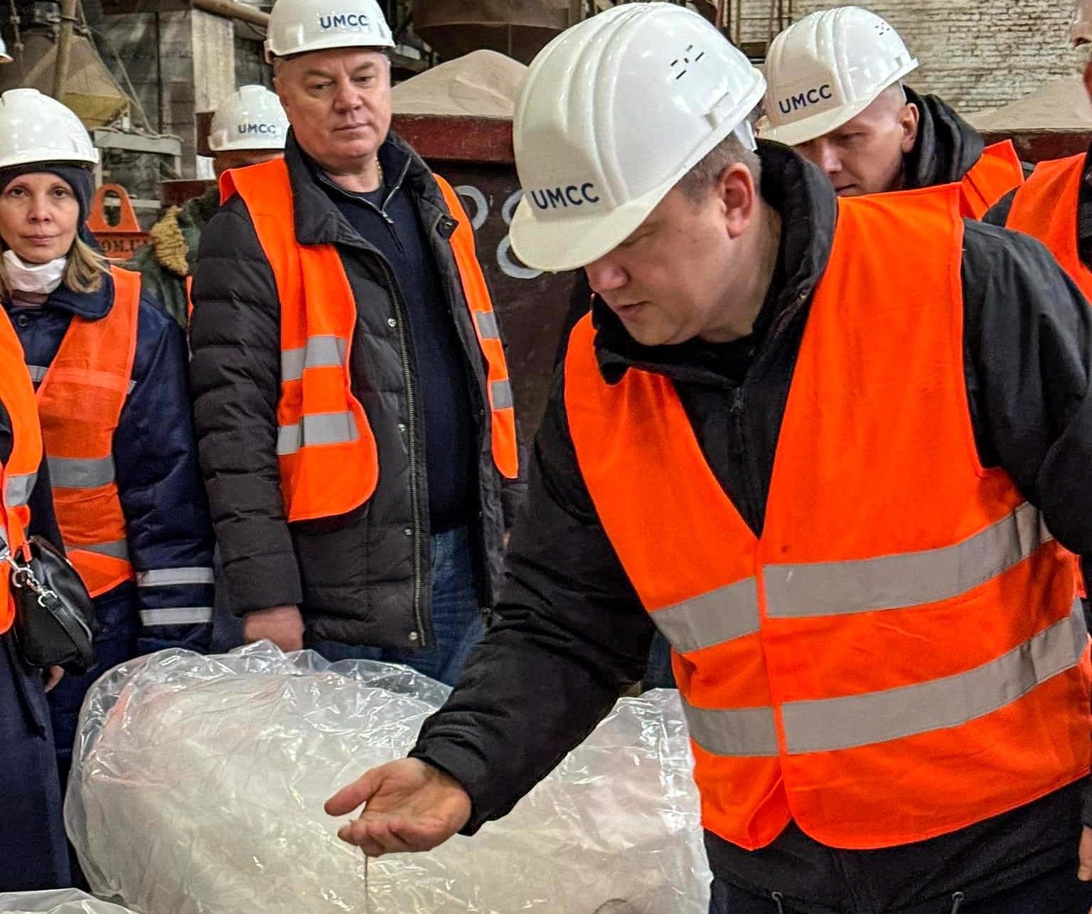 Під час візиту керівництво АТ «ОГХК» та філії ознайомили гостей з роботою карʼєра, збагачувальної фабрики, а також показали дільницю отримання формувальних пісків, де наразі проходить реконструкція: