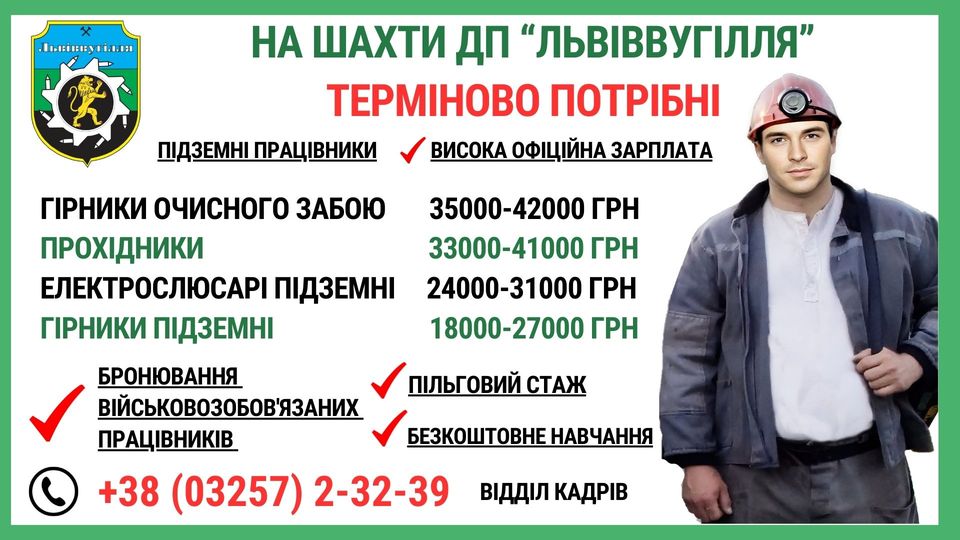 ДП Львіввугілля оголосило термінові вакансії