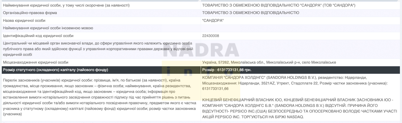 За рахунок чого докапіталізували Сандору? Оперативних коментарів отримати не вдалося, ми готуємо запит до PepsiCo і опублікуємо відповідь, щойно отримаємо.