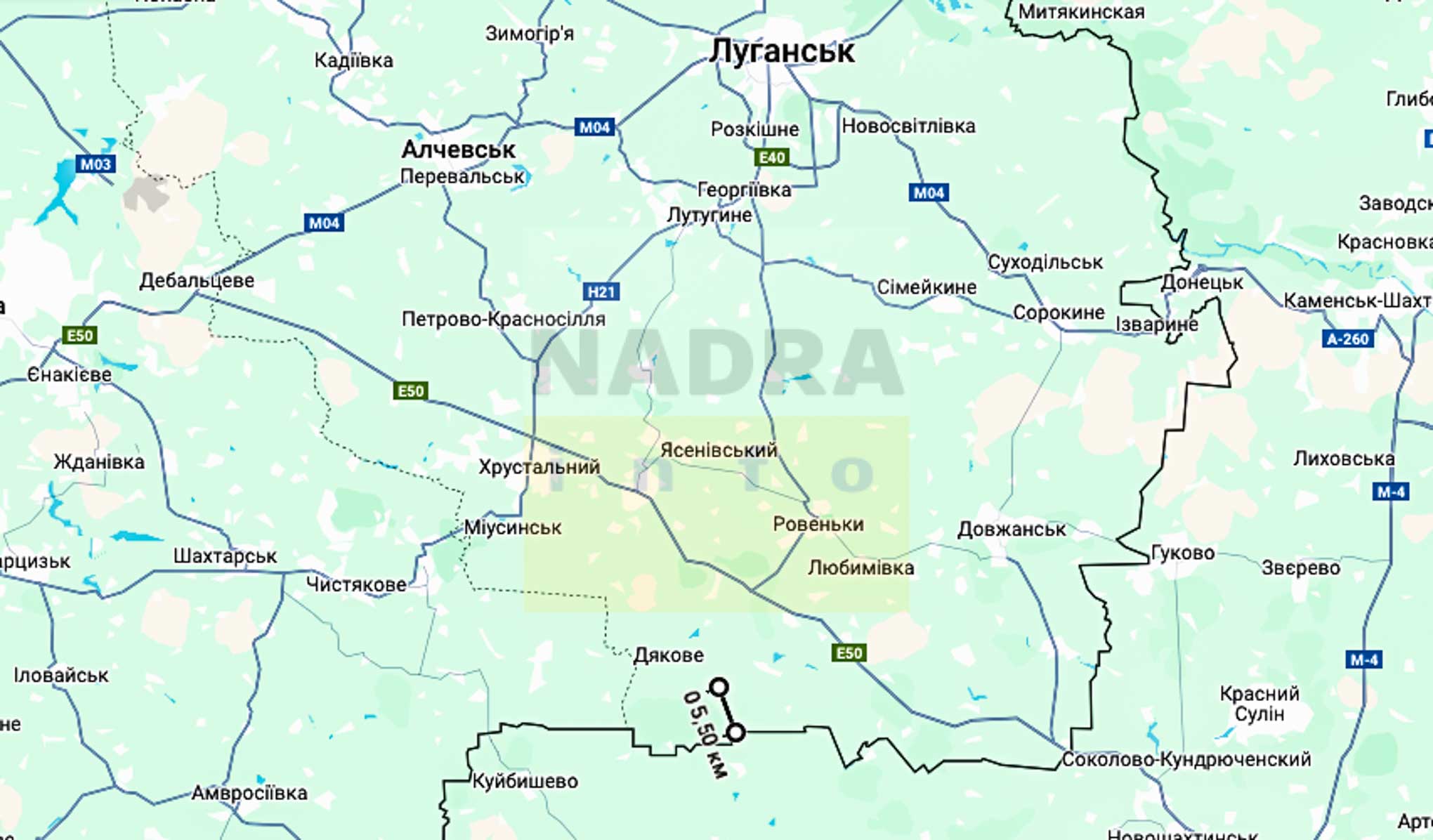 Бобриківське родовище золото-сульфідних руд знаходиться на півдні Луганської області, за 5,5 км від кордону з РФ (територія окупована з 2014 р., джерело зображень – https://www.google.com.ua/maps/):