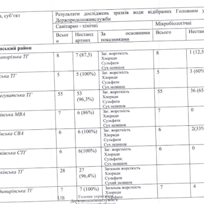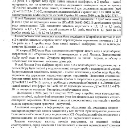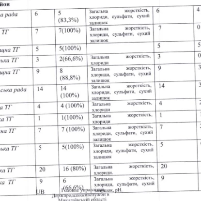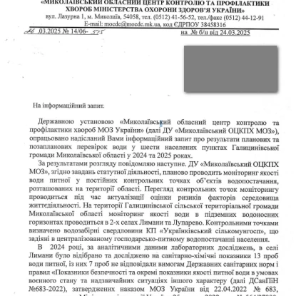 Дослідження води у громадих Миколаївщини у 2024 році. Скриншот документу