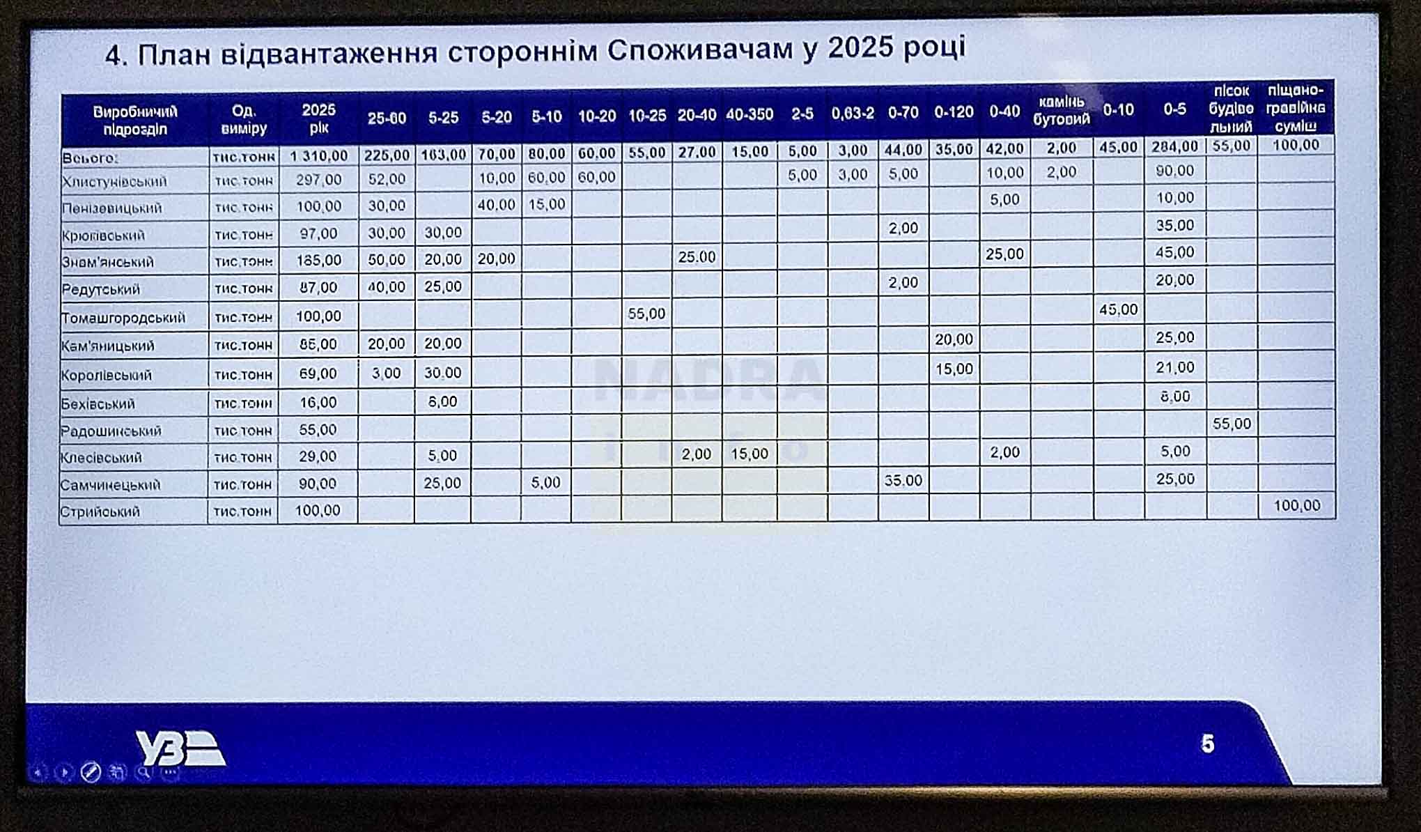 Також в ЦУП оприлюднили плани по реалізації продукції кожним з карʼєрів Укрзалізниці: