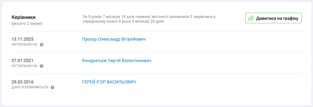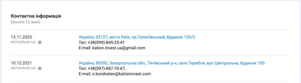 Так, син Валентина Кондратьєва Сергій Кондратьєв більше не є керівником ТОВ «Катіон Інвест» – в листопаді 2025 р. компанію очолив Олександр Прозур: