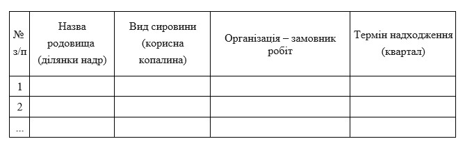 «З метою формування такого графіку до 31 грудня 2025 року очікуємо від заявників інформацію про подання до ДКЗ матеріалів ГЕО на 2026 рік за формою на фото нижче» – йдеться в оголошенні Державної комісії України по запасах корисних копалин: