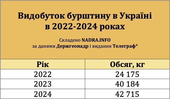 *Дані про видобуток бурштину в 2022 і 2023 роках, опубліковані виданням Телеграф в 2025 р., дивіться за посиланням